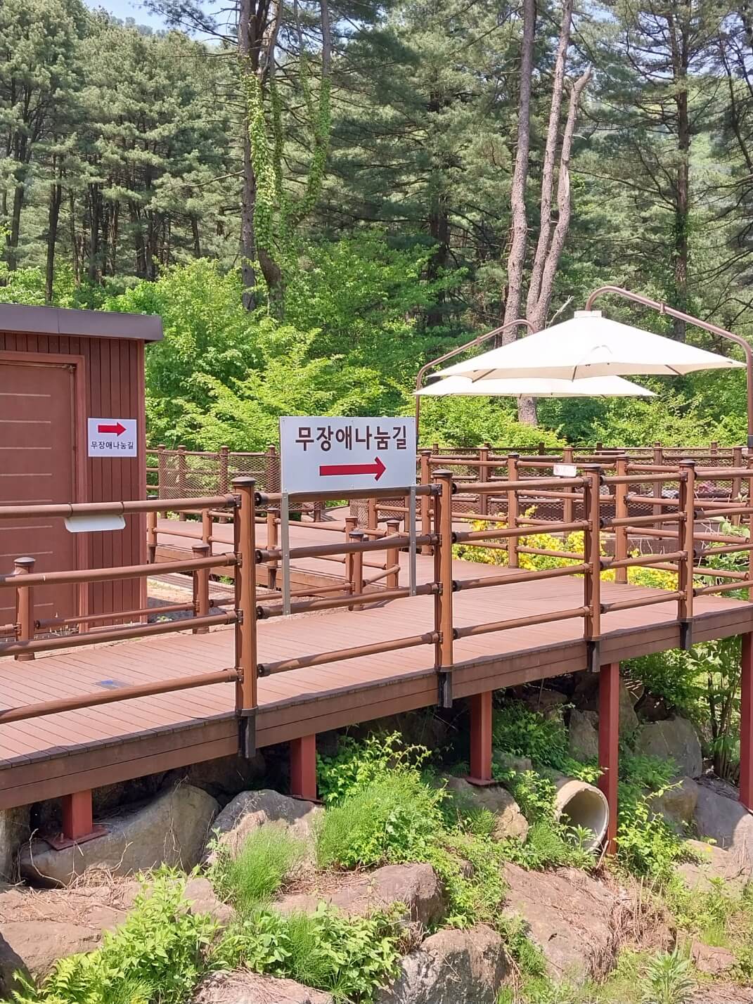 매표소 바로 위에는 무장애나눔길이 있어 유모차나 휠체어를 타시는 분도 완만한 나눔길을 이용하시면 잣나무숲을 충분히 즐기실 수 있으시니 미리 준비해 오시면 좋을 것 같습니다.